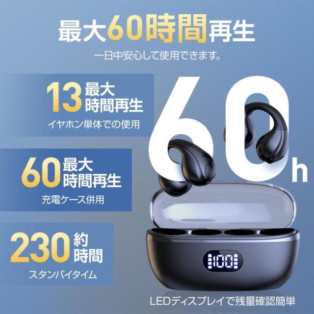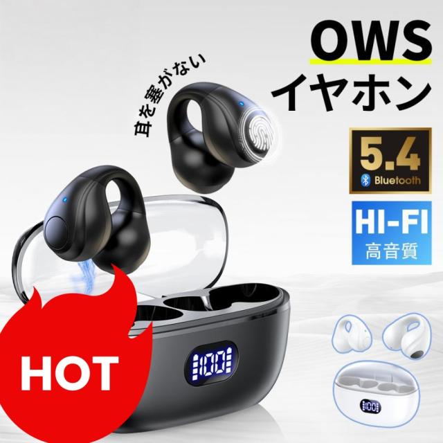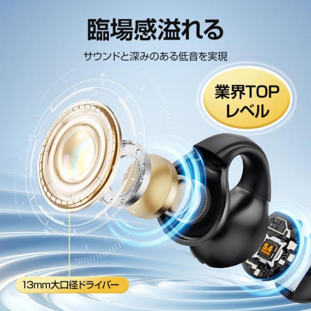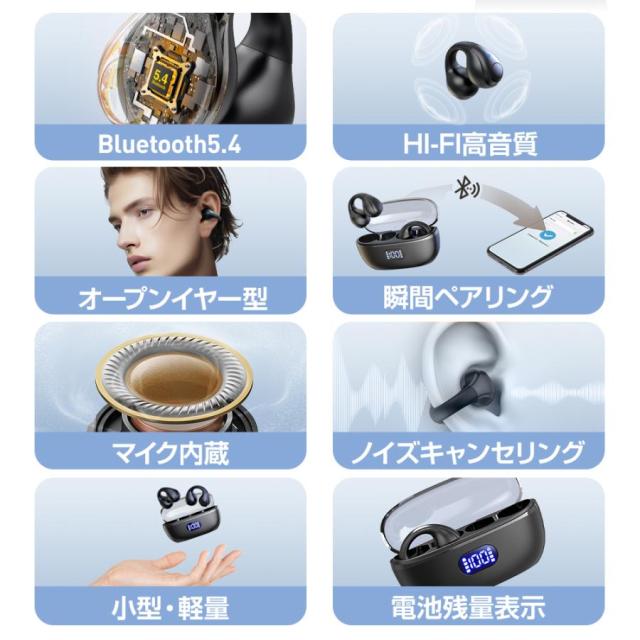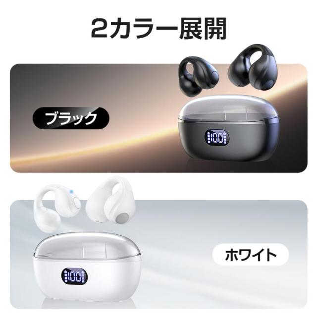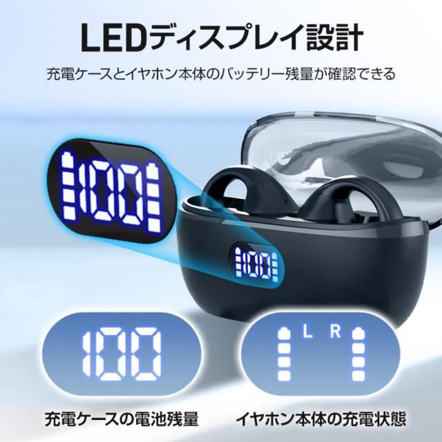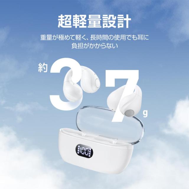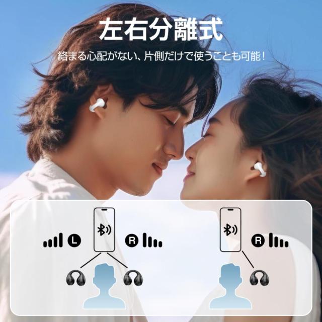 ワイヤレスイヤホン bluetooth5.4 高音質 片耳 両耳 通話 イヤーカフ型 耳挟み式 圧迫感ゼロ LEDディスプレイ 左右分離 音量調整 タッチボタ