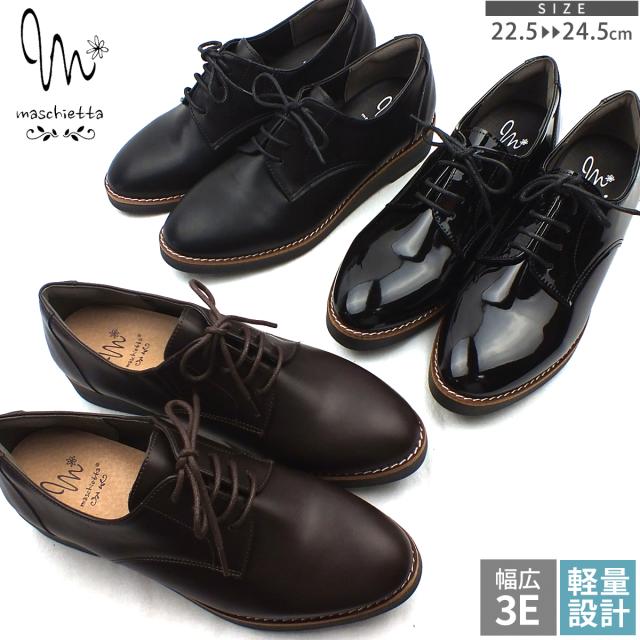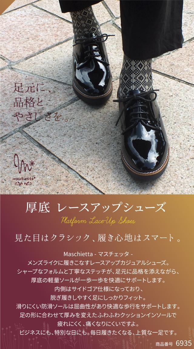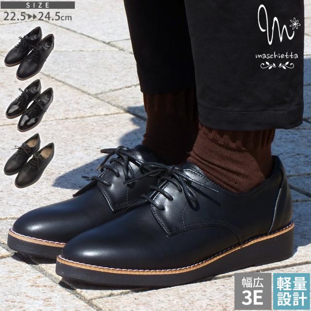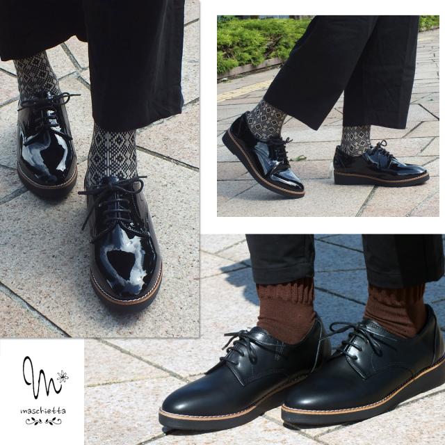 厚底 レースアップシューズ オックスフォード おじ靴 ローファー レディース マニッシュ プラットフォーム 3E EEE 幅広設計 コンフォート カジュアル 軽量 本格ピース巻き 痛くない 歩きやすい おしゃれ プレゼント ギフト maschietta マスチェッタ 6935