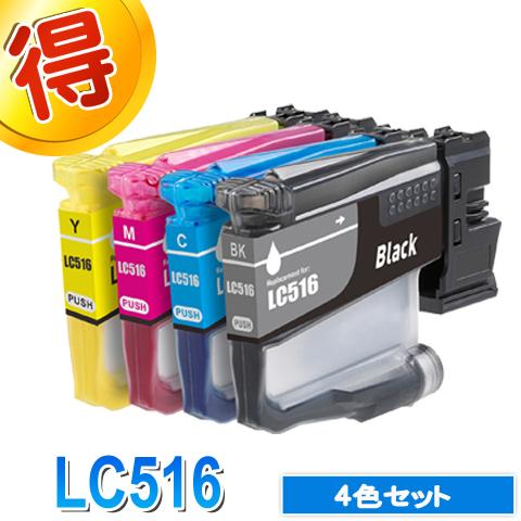 ブラザー プリンターインク LC516 4色セット brother 互換インク カートリッジ LC516-4PK 対応プリンター DCP-J4250N MFC-J4450N MFC-J4950DN 純正インクよりお得 LC516BK LC516C LC516M LC516Y