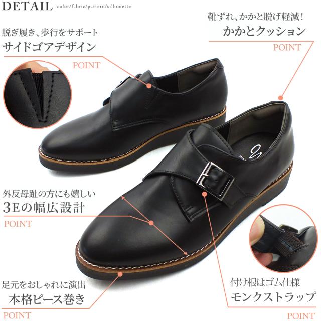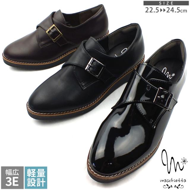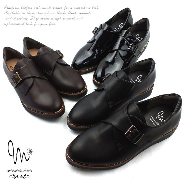 モンクストラップ カジュアルシューズ 厚底 レディース マニッシュ メンズライク おじ靴 プラットフォーム 3E EEE 幅広設計 コンフォート カジュアル 軽量 本格ピース巻き 痛くない 歩きやすい おしゃれ プレゼント ギフト maschietta マスチェッタ 6936