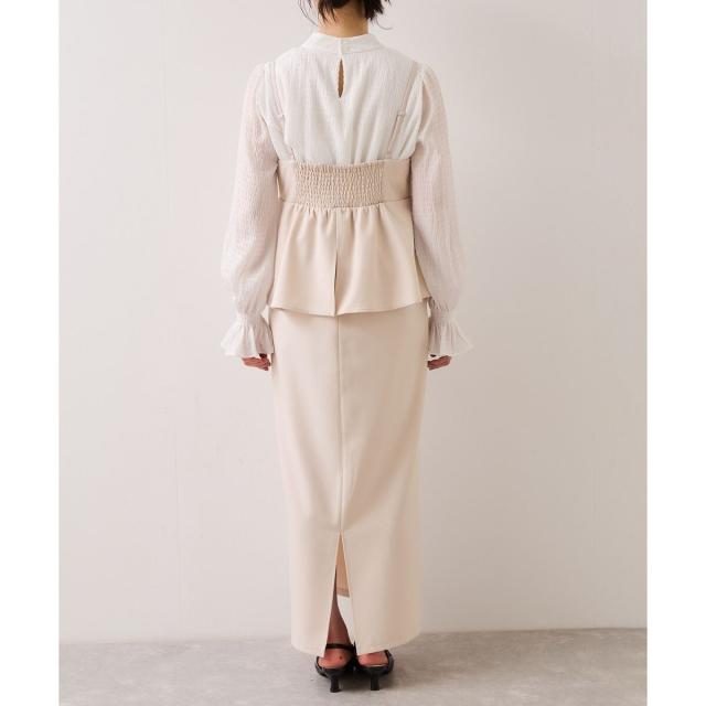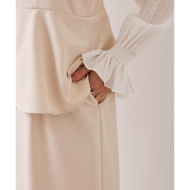 身体のラインを拾いすぎないIラインシルエットに、ペプラム切替を組み合わせた上品なデザイン。