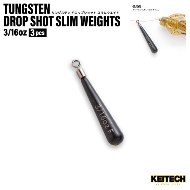 タングステン ドロップショット スリムウエイト シンカー 3/16oz 釣り 3個入 97%タングステン 比重18 ワームゲーム KEITECH ケイテック