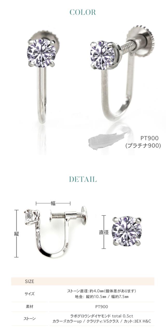 ダイヤモンド イヤリング 一粒 0.5ct プラチナ 金属アレルギー ラボグロウン ダイヤ ダイヤモンドイヤリング ダイヤイヤリングス 人工ダイヤ プラチナイヤリング ラボグロウンダイヤモンド レディース ジュエリー 記念日 誕生日 クリスマス プレゼント 女性 ギフト