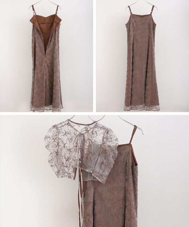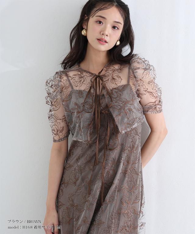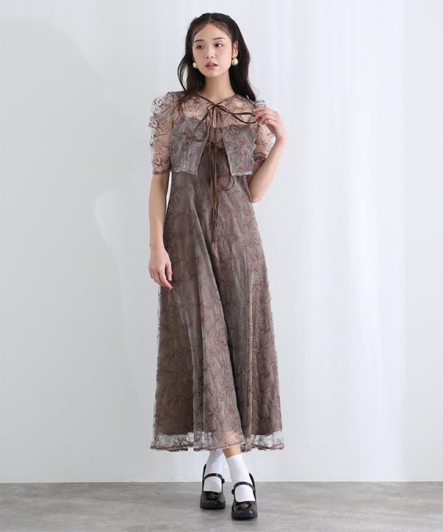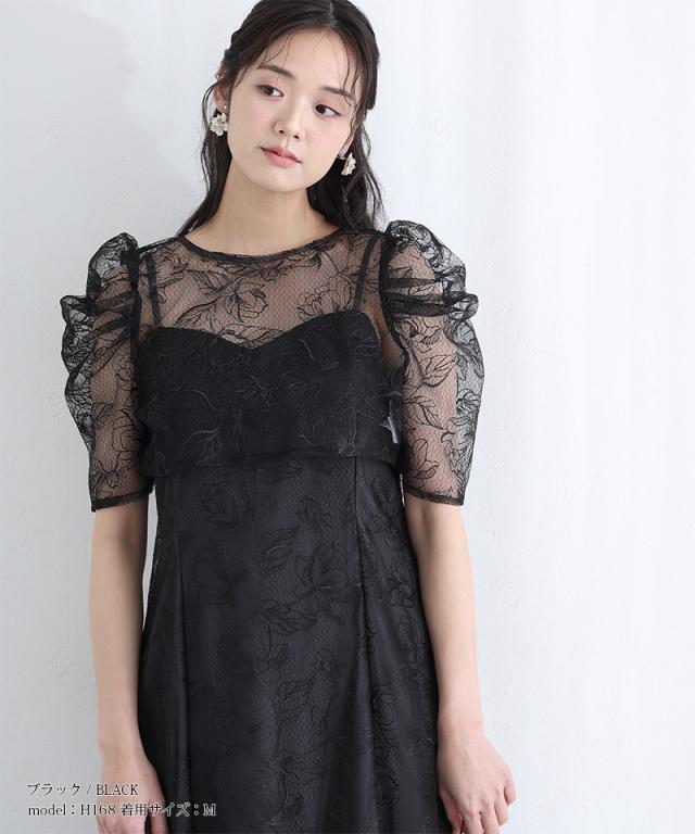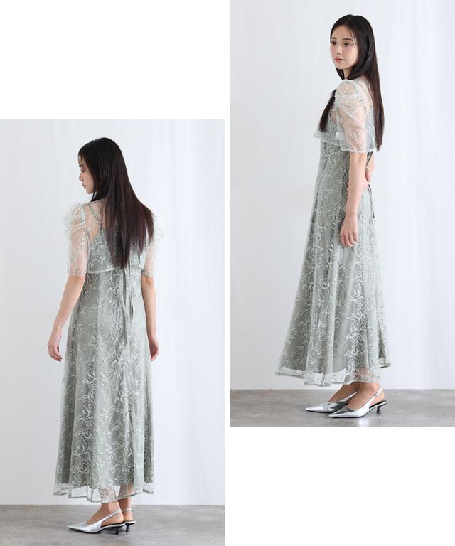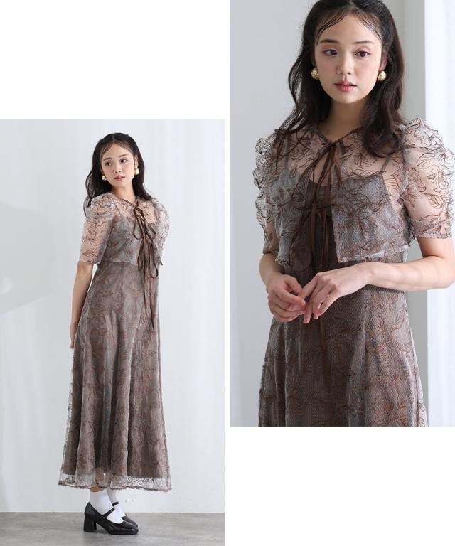 繊細な花柄刺繍レースを贅沢にあしらった華やかセットドレス。