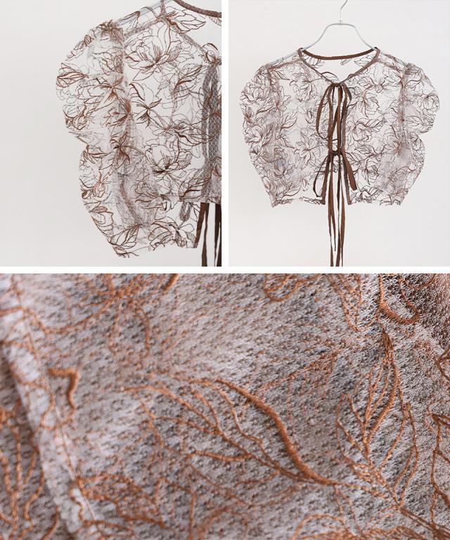 立体感のあるレースボレロがフェミニンな印象を引き立てます。