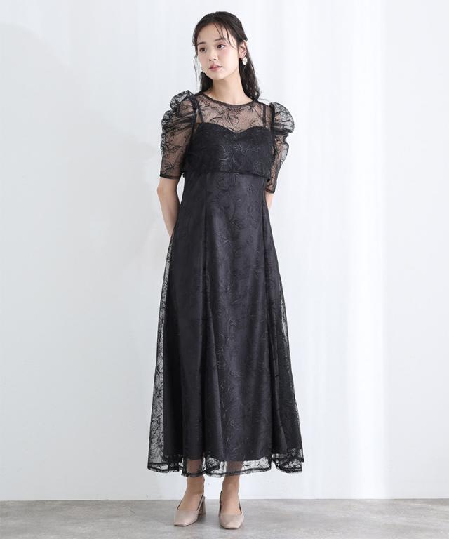 花柄刺繍レースを贅沢にあしらった華やかドレス