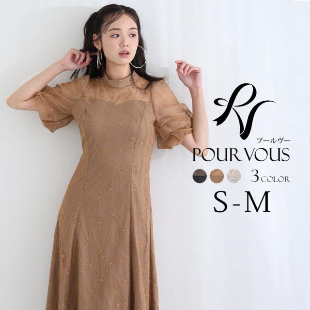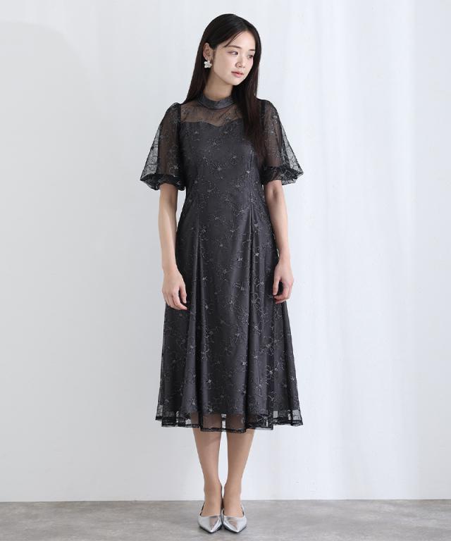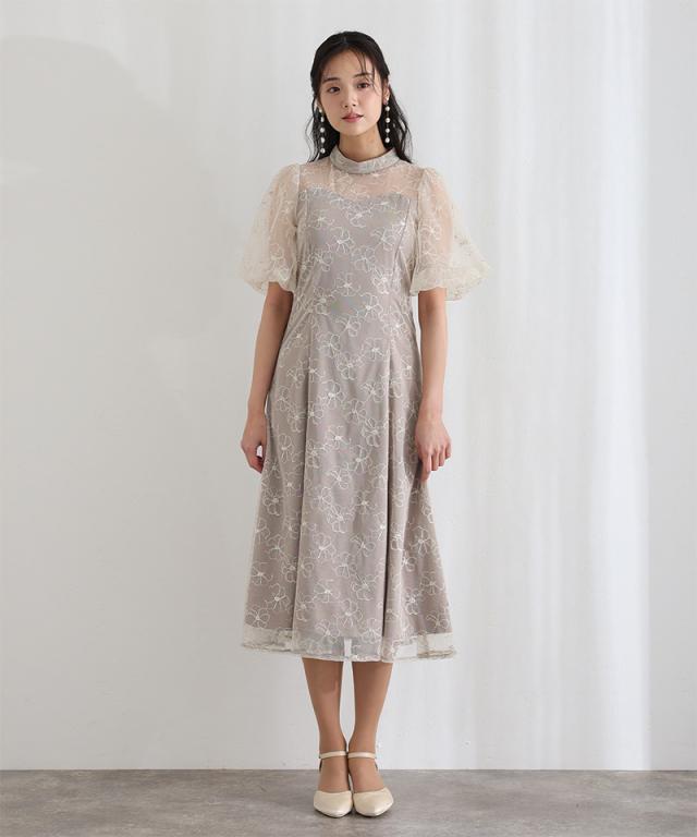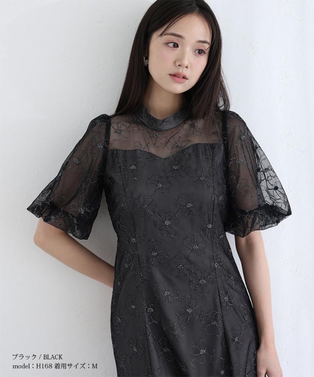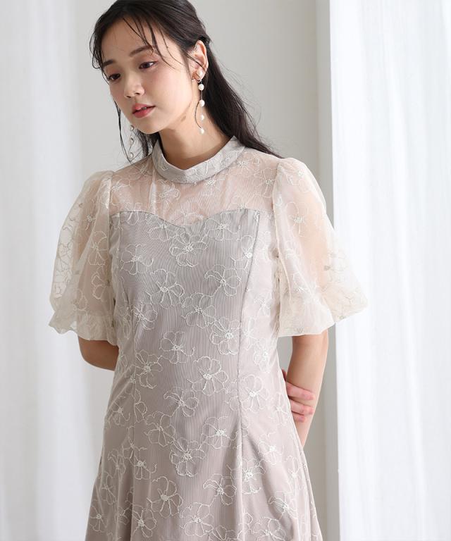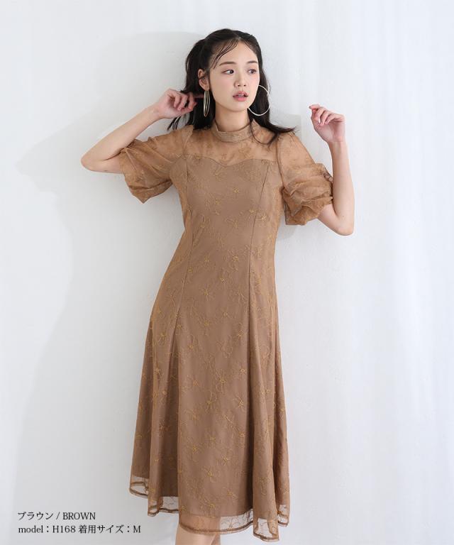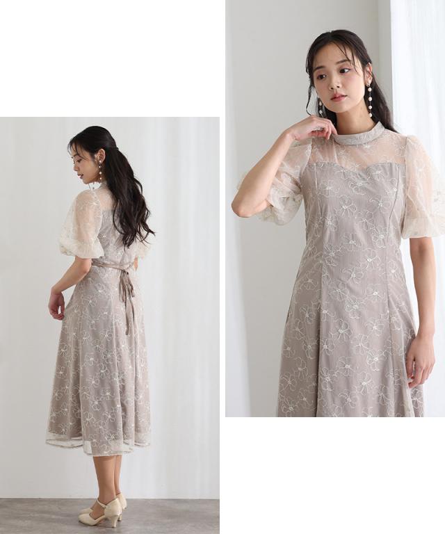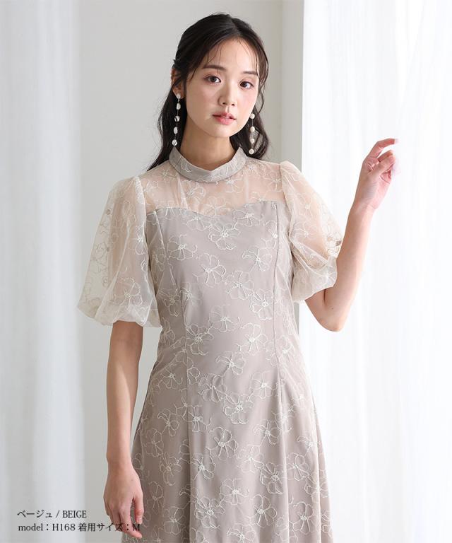 553252222 パフスリーブ 刺繍 パーティードレス 結婚式 ワンピース 大きいサイズ お呼ばれ ドレス オケージョン 母親 フォーマル オケージョンドレス 30代 40代 50代 体型カバー 上品