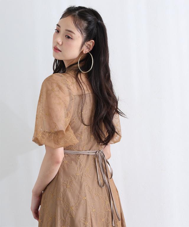 ふんわりと広がるオーガンジーのパフスリーブが、軽やかさと女性らしい甘さを添えます。