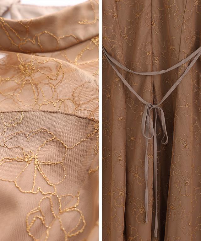 繊細な立体刺繍を贅沢に施した、上品さと存在感を兼ね備えた一着。
