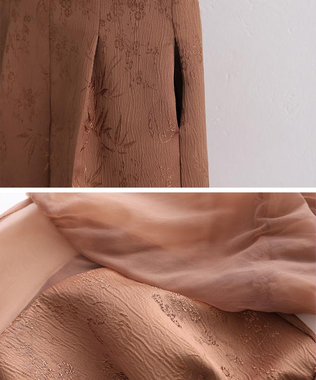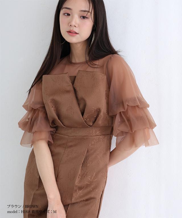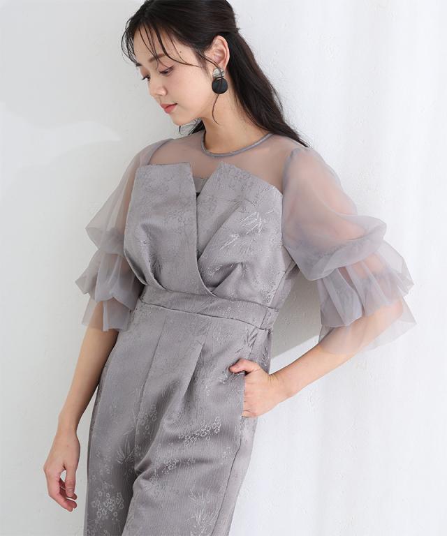 リッチなジャガード調生地で仕立てた華やかモードなオケージョンドレス。