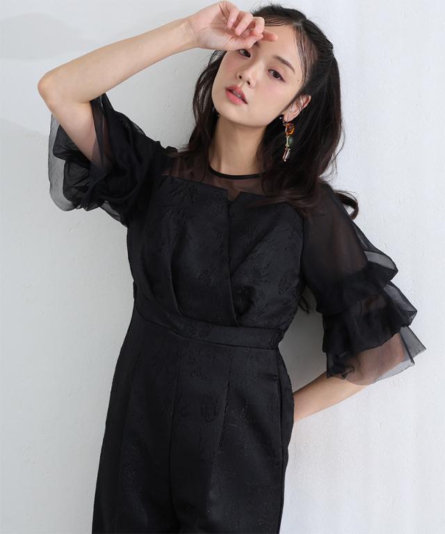 軽やかなシアー素材のフリルスリーブがフェミニンな華を添えます。