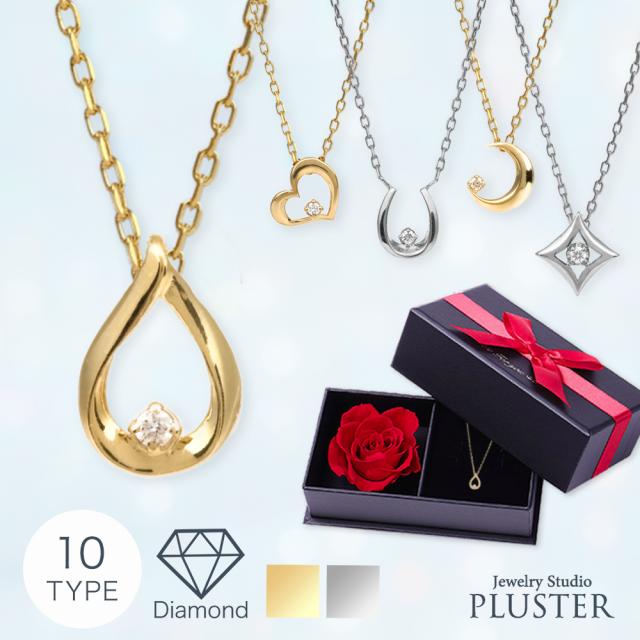 ダイヤモンド ネックレス レディース 一粒 ゴールド ハート 馬蹄 月 ドロップ しずく ひし形 金属アレルギー対応 シルバー プラチナ 仕上げ ダイヤネックレス シンプル ペンダント かわいい 大人 ジュエリー プリザーブドフラワー クリスマス プレゼント 女性 誕生日 ギフト