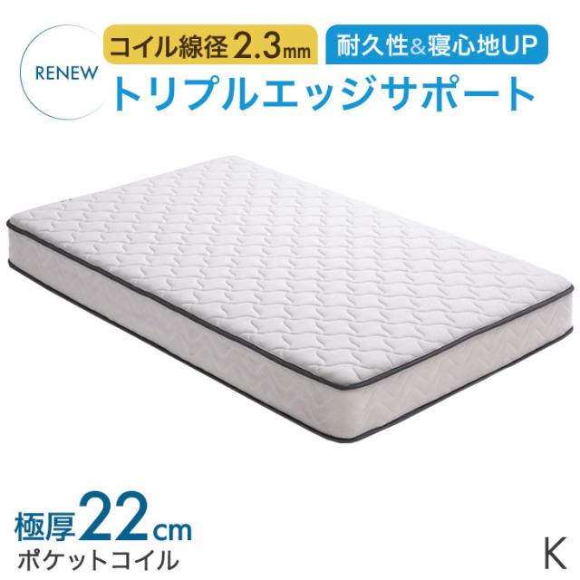 マットレス キング ポケットコイル 極厚22cm 更に強力“トリプルエッジサポート” 超耐久&寝心地UP メッシュ ポケットコイルマットレス コイルマットレス ベッドマット ベッドマットレス