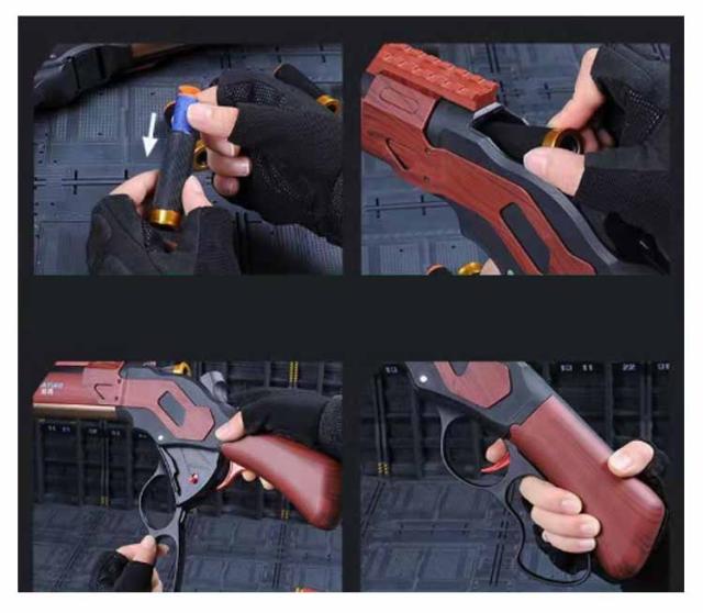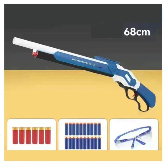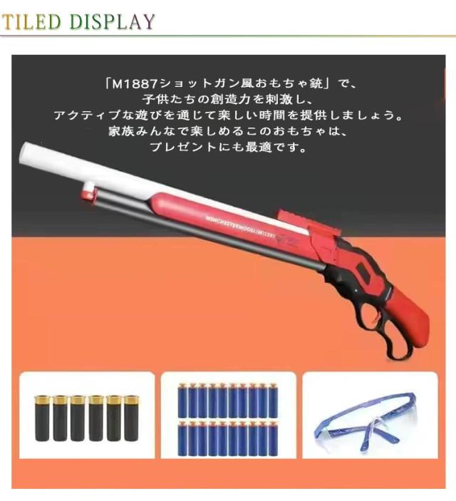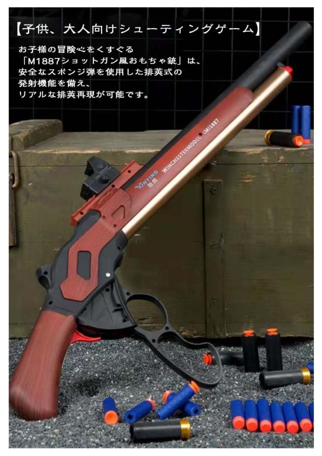 Toy 木目色 銃 銃 モデル M1887 安全 排莢式 発射 おもちゃ銃 排莢再現 スポンジ弾 ショットガン 散弾銃 M1887 エアガン 発射 排莢式 レバーアクション ライブカート式 連発式 ショットガン風おもちゃ銃 ブルー レッド