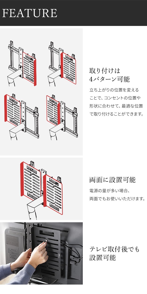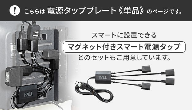 WALL SEVENSTAND セブンスタンド A2対応 電源タッププレート ケーブル収納 コード収納 背面収納 整理 配線整理 ブラック 黒 スチール製 結束バンド付き マグネットOK すっきり おしゃれ パーツ WALLオプション ウォール インテリアテレビスタンド