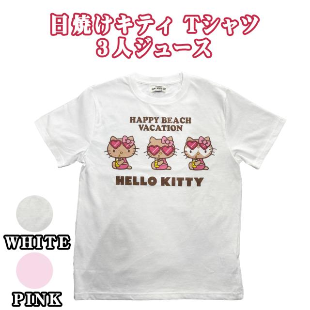 サンリオ 日焼けキティ HELLO KITTY T-SHIRTS 雑貨 沖縄 お土産 SANRIO HAPPY BEACH VACATION tシャツ レディース 半袖 綿100% 日焼け ハローキティ 3人ジュース Tシャツ