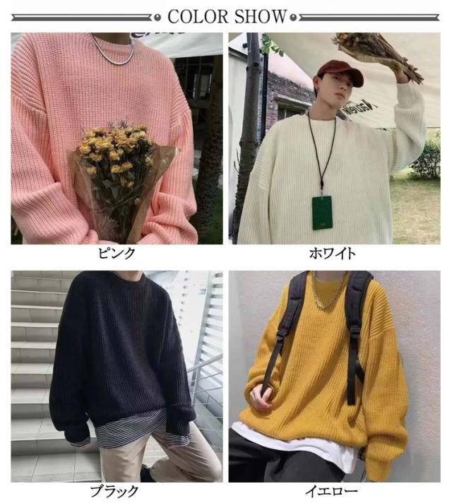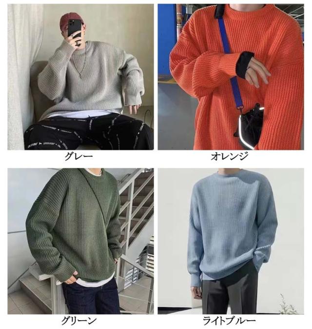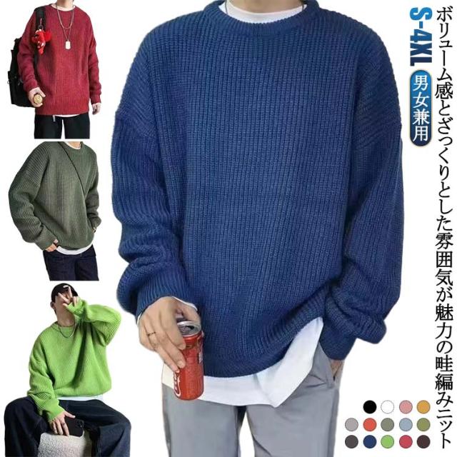 レディース シンプル メンズ 丸首 ニット クルーネック セーター ニットセーター ゆったり 畦編みニット ニットソー ニット トップス 大きいサイズ 暖かい あったか メンズファッション 男女兼用 カジュアル 無地 大人 秋 冬