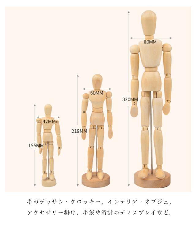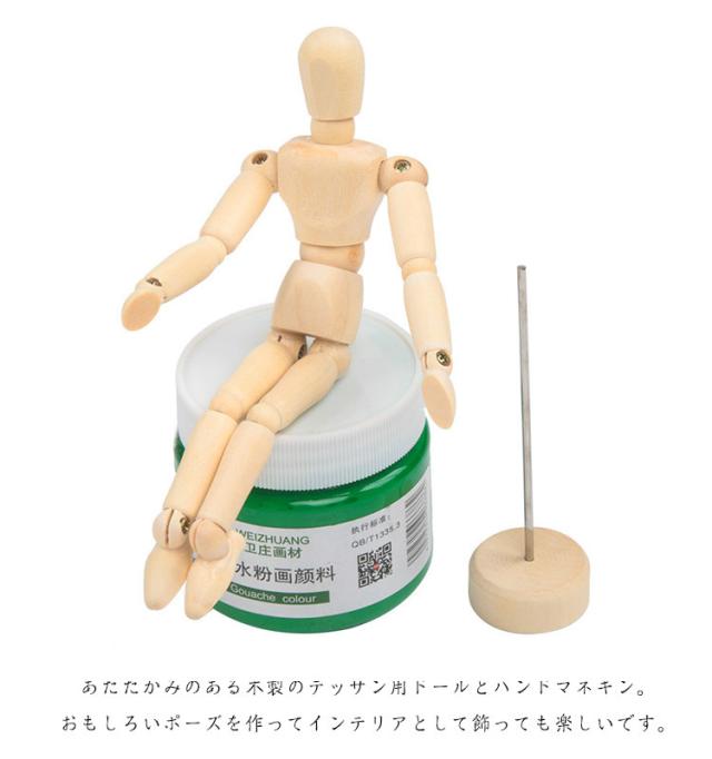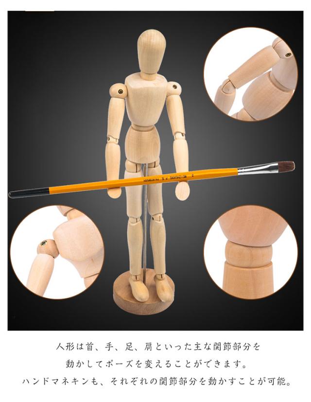 | 簡単なデッサンのモデルにぴったり! 人形、右手と左手が選べる! あたたかみのある木製のデッサン用ドールとハンドマネキン。おもしろいポーズを作ってインテリアとして飾っても楽しいです。 手のデッサン・クロッキー、インテリア・オブジェ、アクセサリー掛け、手袋や時計のディスプレイなど。 人形は首、手、足、肩といった主な関節部分を動かしてポーズを変えることができます。ハンドマネキンも、それぞれの関節部分を動かすことが可能。 人形は台座付き。ジャンプなどの空中での動きを作ることができます。また、ハンドマネキンは高さ17.5/25/30cmと、実物の手とほぼ同サイズ。 | |