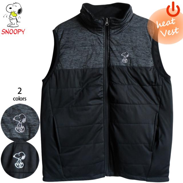 送料無料 スヌーピー ヒートベスト ベスト メンズ 防寒チョッキ バッテリー付 5000mAh 男女兼用 ノースリーブ 防寒 電熱 ヒーター 発熱 黒 グレー プレゼント あったか 年末年始 イベント キャンプ アウトドア スポーツ観戦