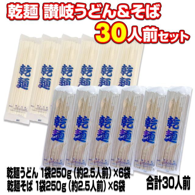 保存食 1年間美味!乾麺 うどん そば 30人前セット 備蓄 お中元 お歳暮 母の日 父の日 冠婚葬祭