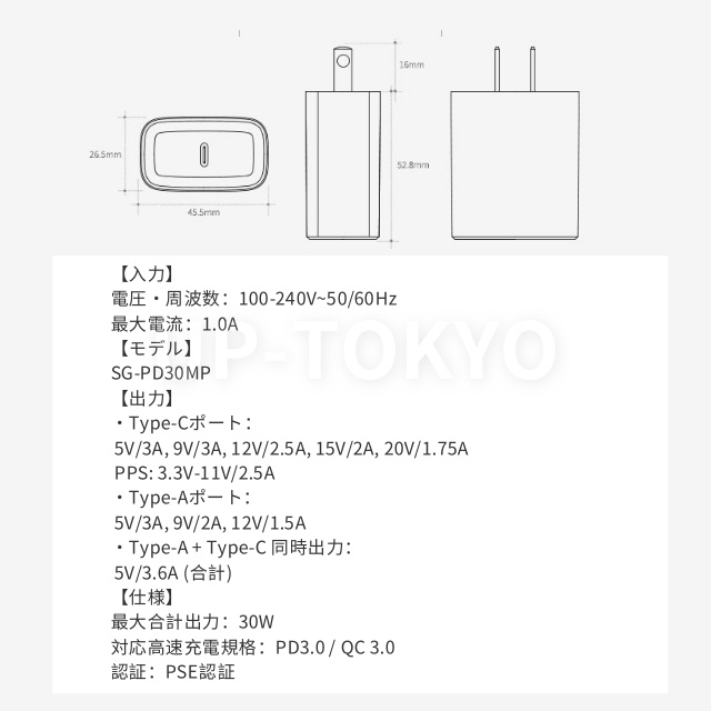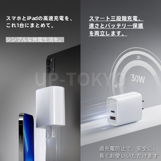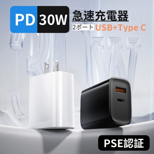 即納 充電器 PSE認証 PD30W ACアダプター 急速充電器 高速充電器 PD ACアダプター 2ポート 2口 Type-C Type-A 対応 iPhone Galaxy Xperia PD30W Android ノートパソコン タイプC タイプA PSE認証済み 小型 コンパクト 軽量