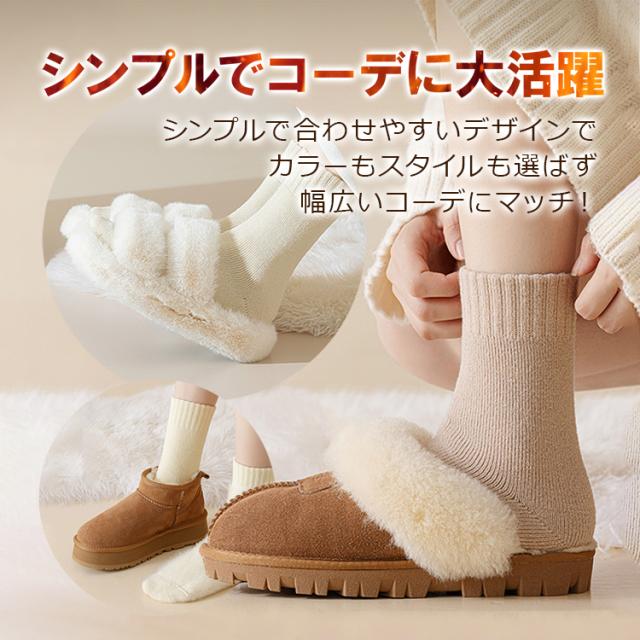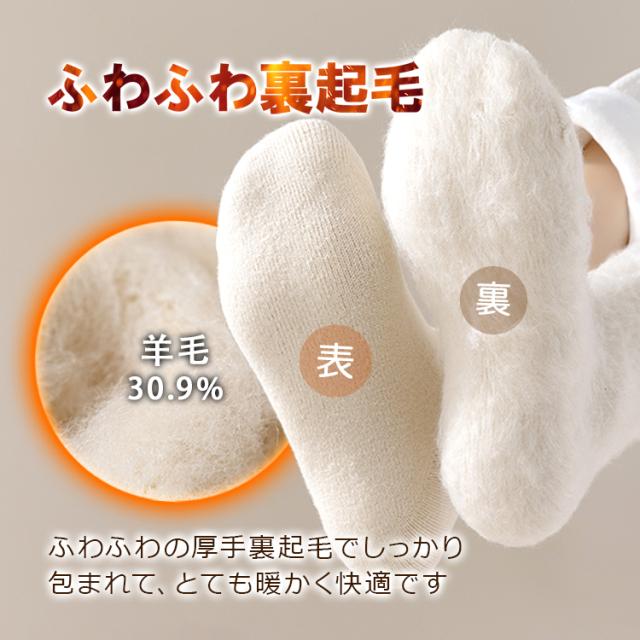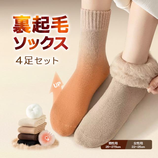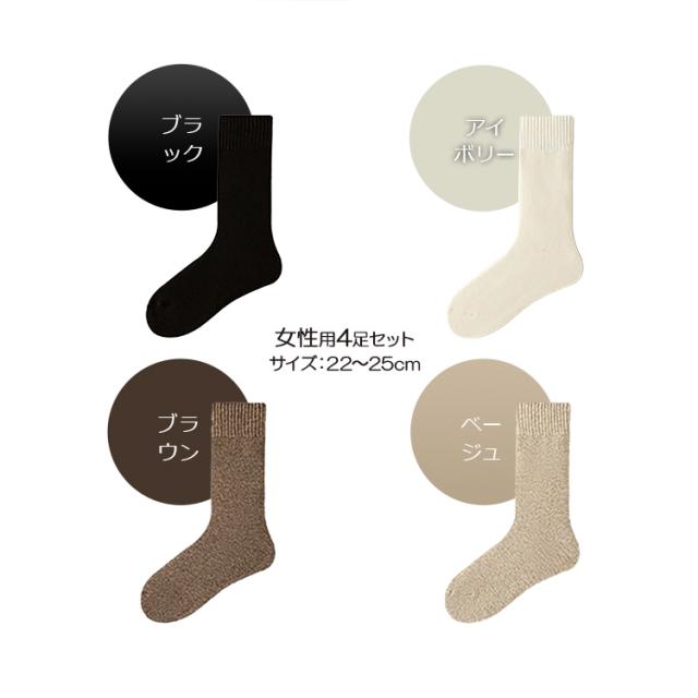 裏起毛ソックス4足セット ぽかぽか ふわふわ 暖かい厚手靴下 ルームソックス 伸縮性 冷え対策 防寒 シンプル シームレス縫製 ウール入り YMW04S