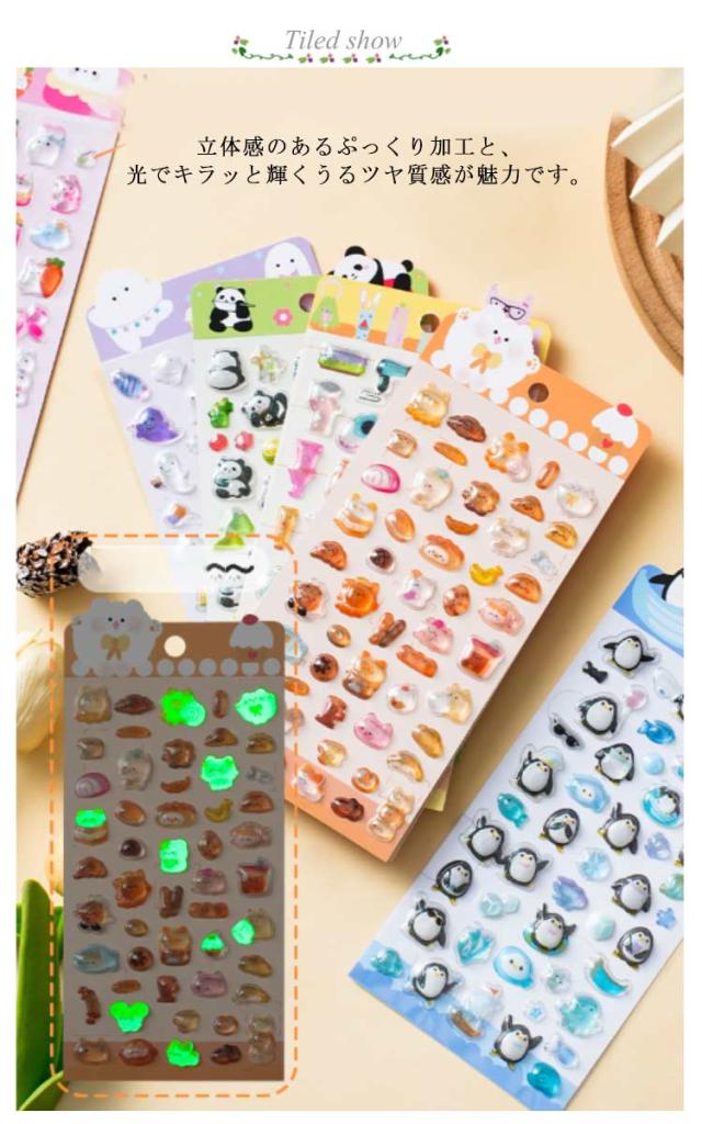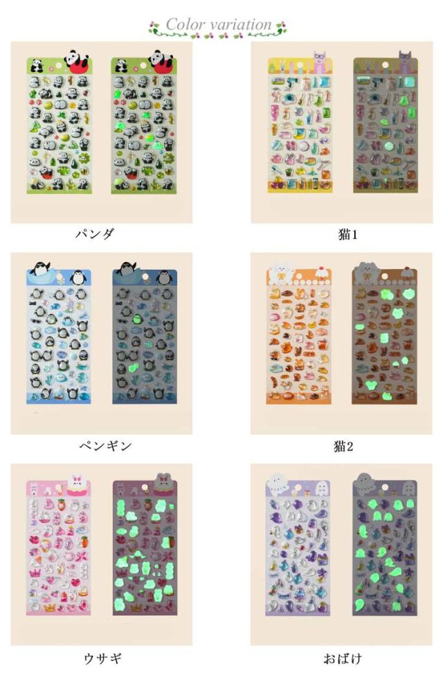 猫 暗闇で光る!蓄光ぷっくりうるつやシール 2枚セット パンダ 装飾用 透明 可愛い スマホケース おばけ うさぎ キャラクター ぷくぷく 3D立体 シール帳 手芸用品 水筒 暗闇で光る!蓄光ぷっくりうるつやシール ペンギン