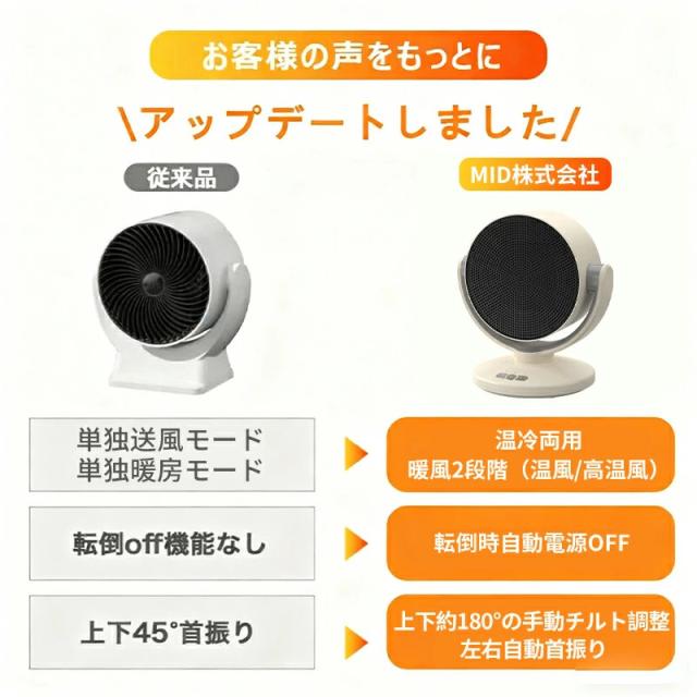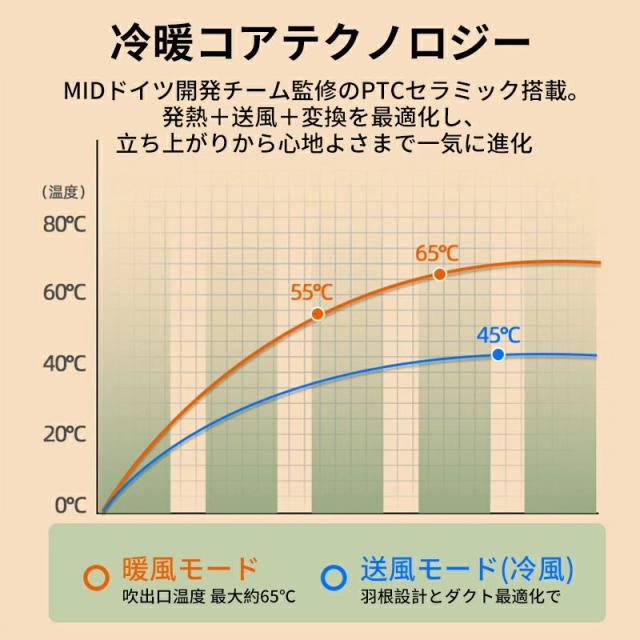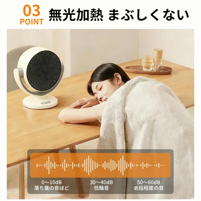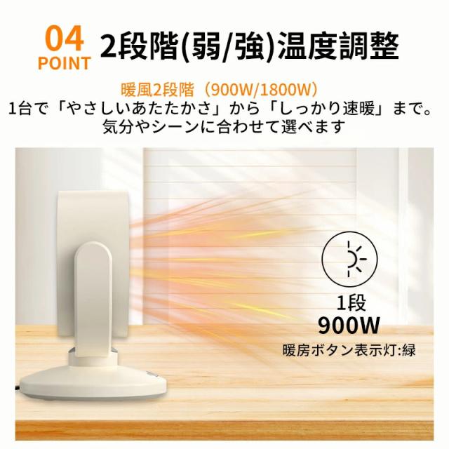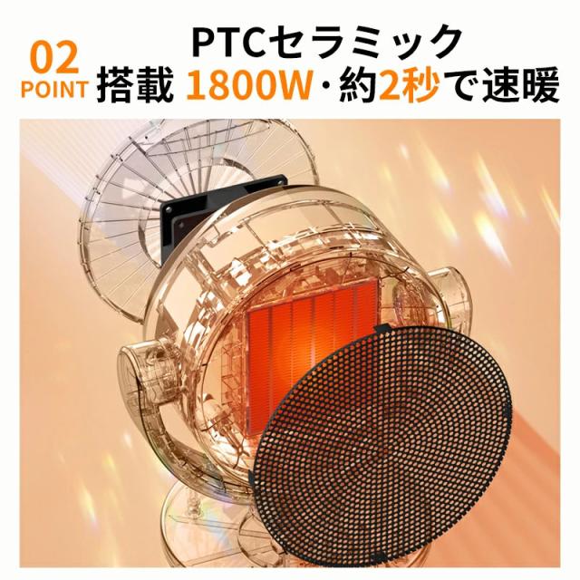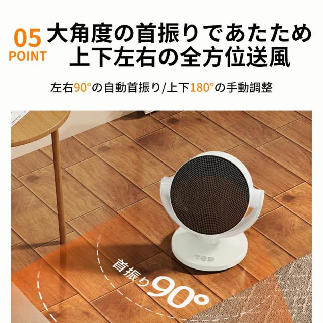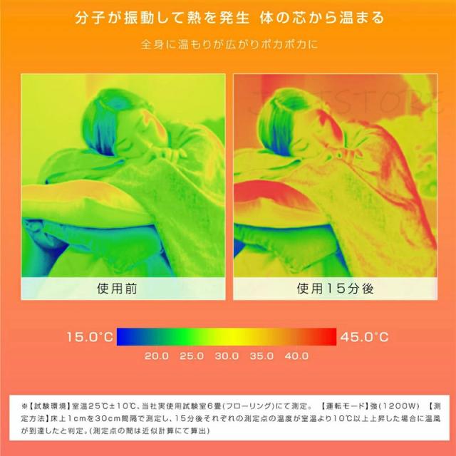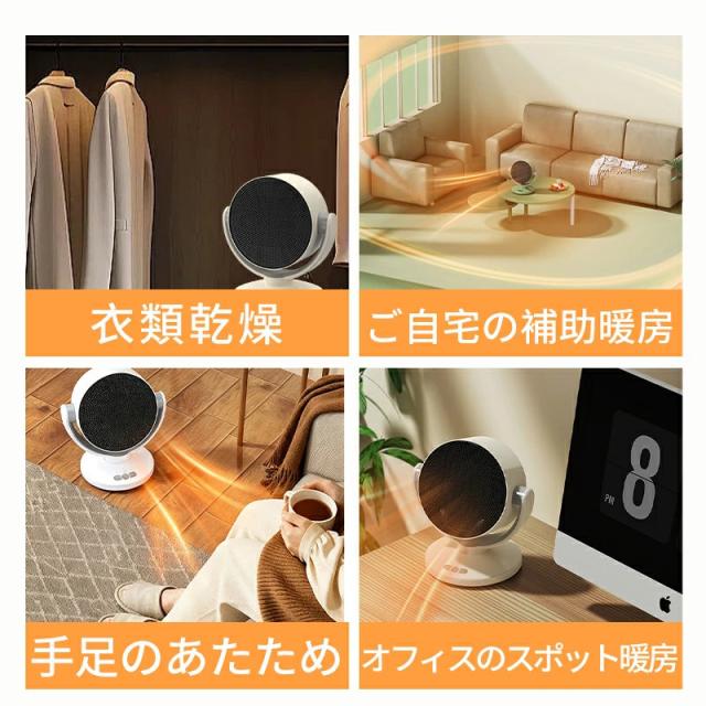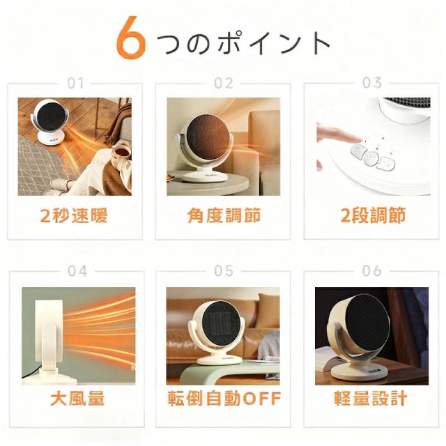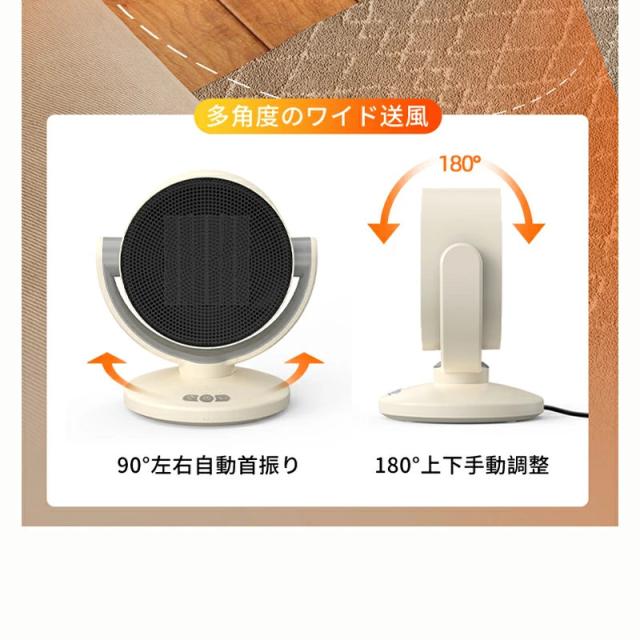 ●【安心・安全な機能】転倒自動OFF機能:地震や不意の転倒に備えた転倒時電源遮断装置を搭載しており、衝撃して転んだときに自動的に電源も切ります。 万が一不意の衝撃でもこの電気ヒーターが倒れても、自動的に電源が切ります。過熱防止機能:本体が連続運転によって過熱すると、自動的に過熱保護機能が起動され、電源が自動的に切ってくれます。直火なし:PTCセラミックを活用して発熱し温風で温めるため、ガスや石油などのオイルをを使わないため、明火なしに室内空気を汚さず、換気しにくい場所での使用にもビックリ!