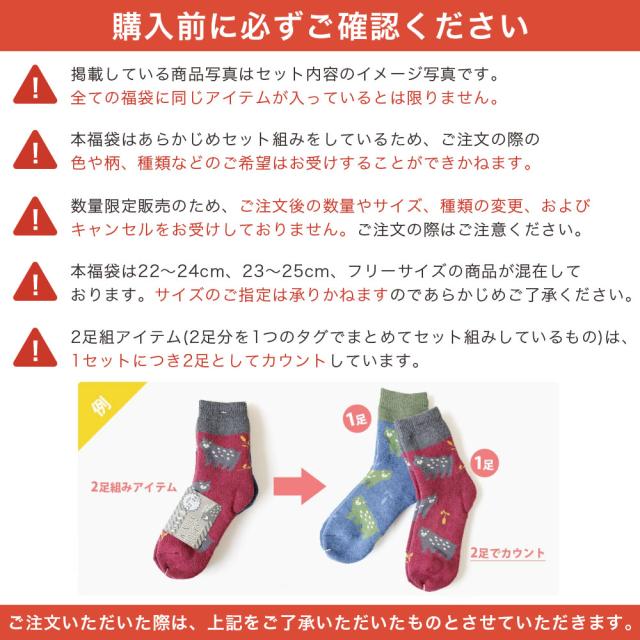 ※当福袋は22〜24cmサイズと23〜25cmサイズ対応の靴下が入ったレディース用福袋です。
