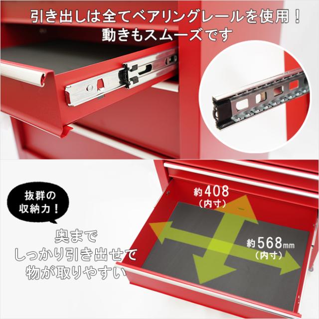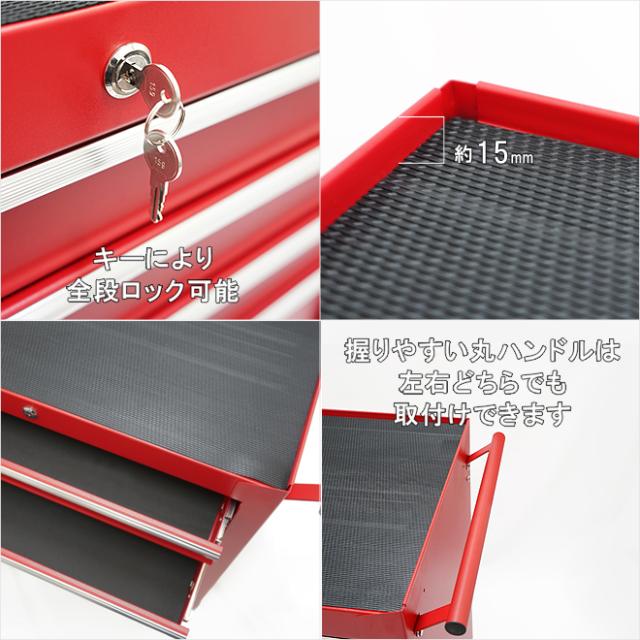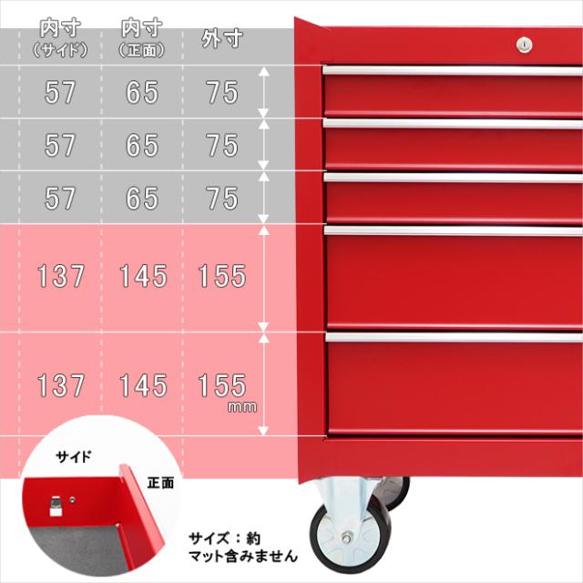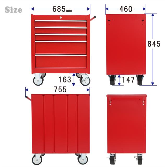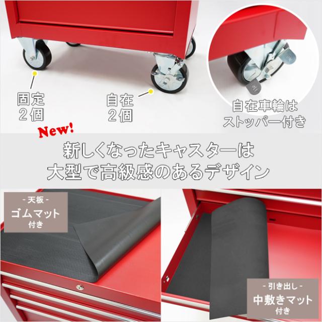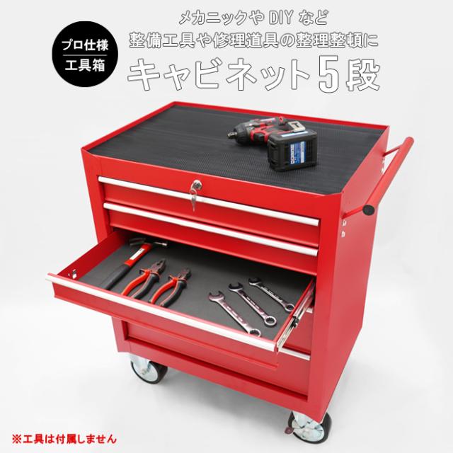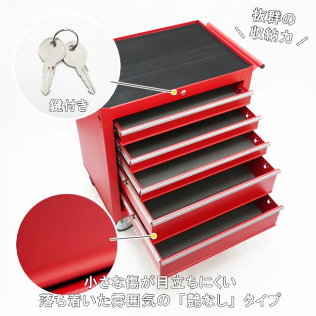 ローラーキャビネット 5段 艶なし マットタイプ ロールキャビネット 収納ボックス ツールボックス ツールキャビネット ワゴン 工具箱 大型キャスター レッド KIKAIYA