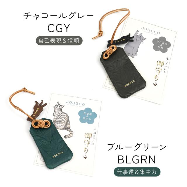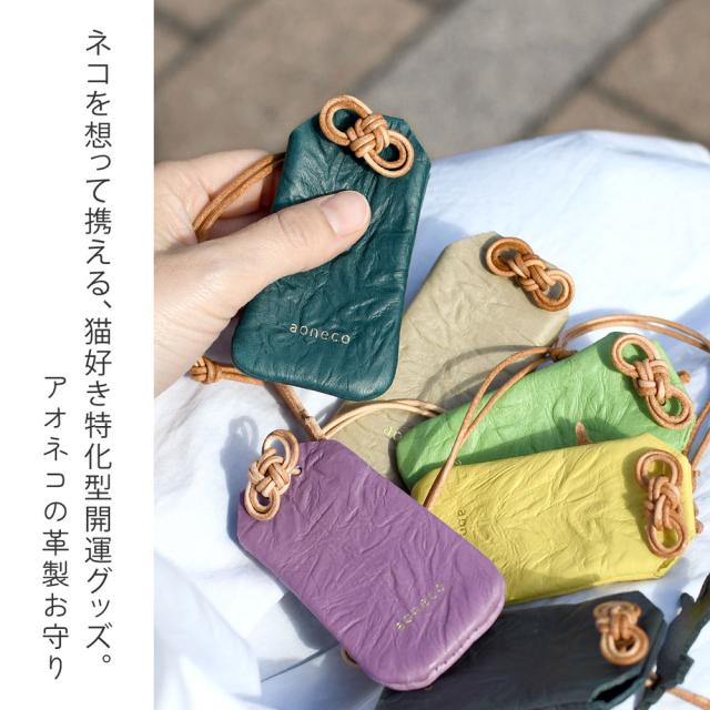 猫 お守り ネコ 御守り aoneco アオネコ 日本製 レディース 本革 革小物 姫路レザー 牛革 ネコに手 猫型 猫グッズ waji ワジ お守りケース キーホルダー アクセサリー 革 保護猫 支援 ネコも守れる 水引 御守 縁起物 開運 国産 グリーン 緑 パープル 紫【メール便対応可】