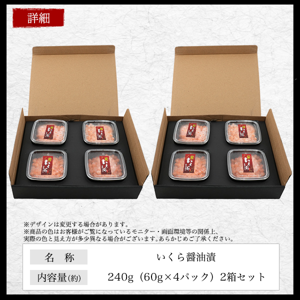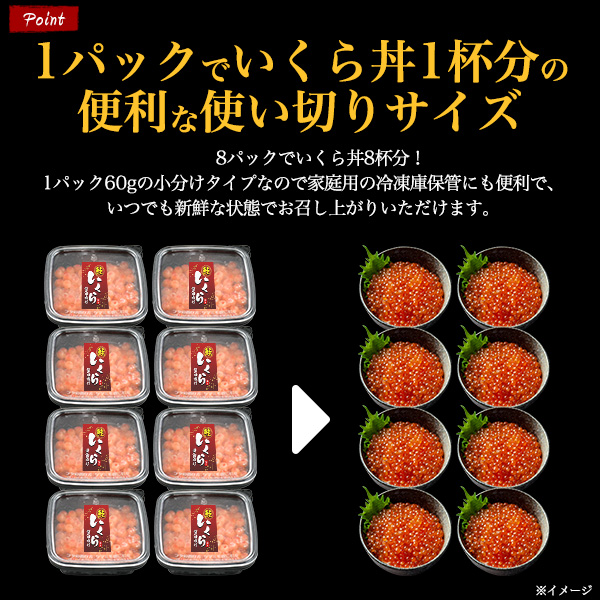 いくら 醤油漬け 合計480g (60g×4パック ×2箱) 鮭いくら チャム イクラ醤油漬け いくらしょうゆ漬け 魚卵 海鮮 寿司ネタ 海鮮丼 大容量 薄皮 プチプチ食感 高級食材 ご家庭用 2025年 お歳暮 ギフト 贈り物 冷凍配送 送料無料 おせち お正月