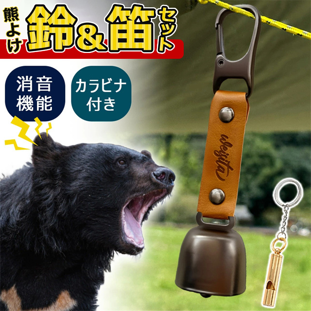 送料無料 冬新作 熊よけ鈴 ホイッスル付き くま クマ 鈴 ベル 熊鈴 熊避け 消音機能付き 笛 熊笛 カラビナ付き ストラップ キーホルダー 登山 対策 グッズ キャンプ 遭難 鹿 ハイキング 農作業 セット アウトドア PUレザー 鉄 大音量 動物