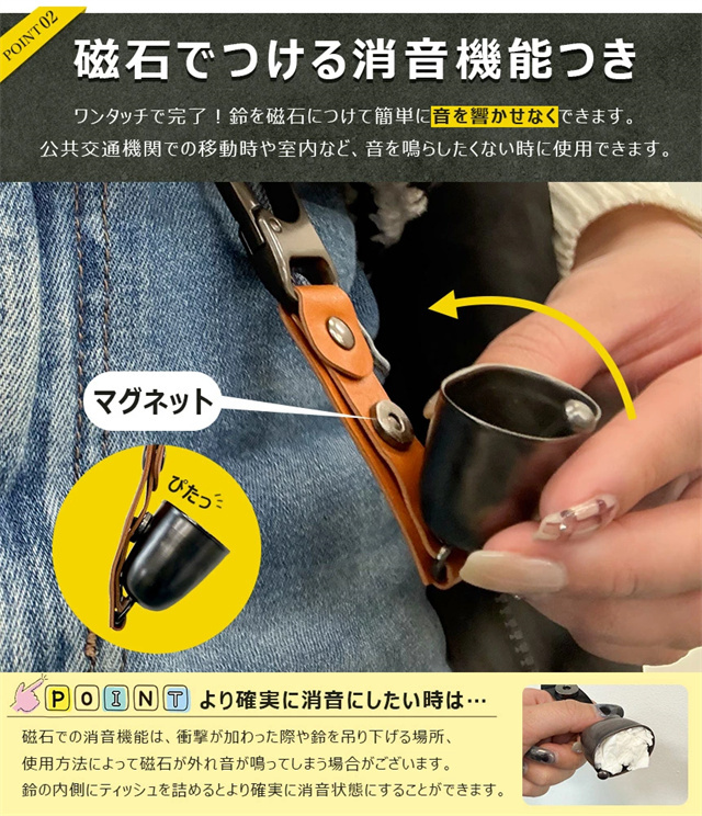 熊よけ鈴 熊鈴 鈴 ベル 山鈴 熊ベル 消音機能 付き カラビナ PUレザー マグネット 磁石 消音 クマよけ 熊よけ 鹿 遭難対策 登山 自転車 山菜取り キャンプ ハイキング 農作業 渓流 釣り 消音機能付き 熊よけスプレー 熊スプレー 熊撃退スプレー くまよけ鈴 くまよけ道具 クマスプレー ホーン 熊対策グッズ 熊一目散 爆竹砲 熊対策 ホイッスル付き 熊よけベル 1個 2個 セット