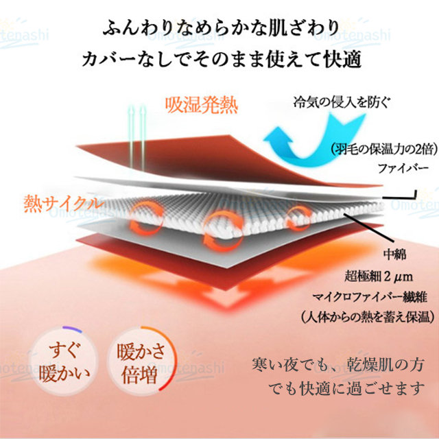 - 手触りがとても良く、十分に暖かいです。 夜寝るときも、足が冷えることがなくなりました。