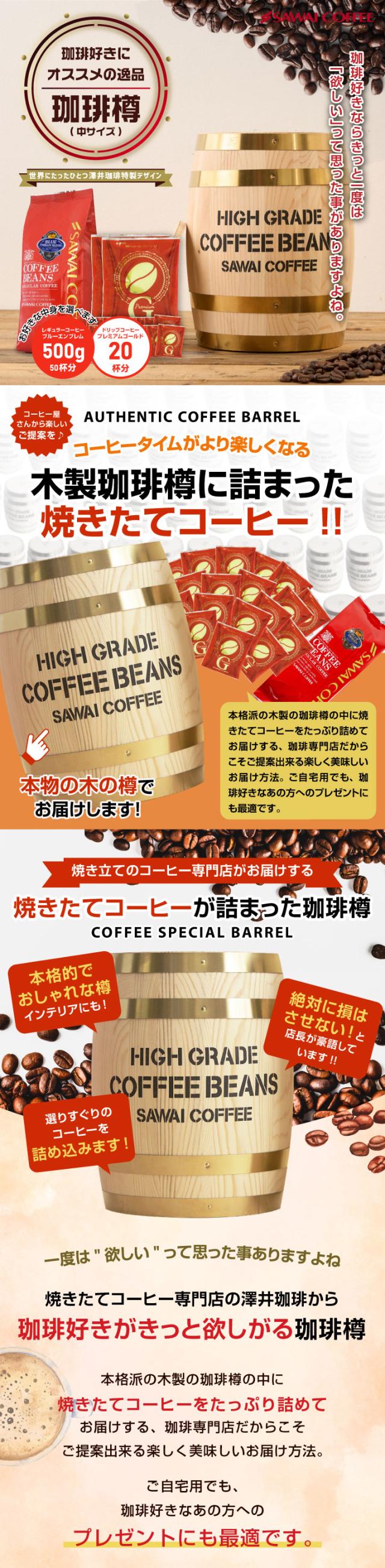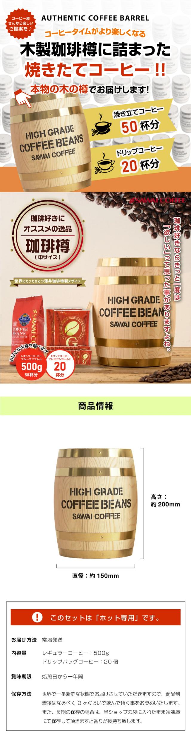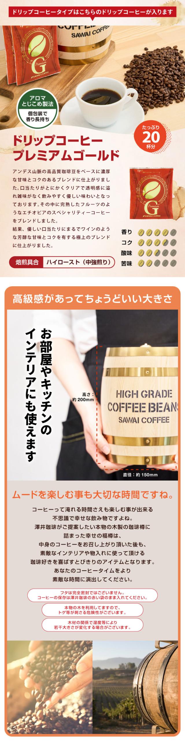 送料無料 コーヒーギフト コーヒー 珈琲 プレゼント "縁起物のミニチュア木樽に詰まった福樽" 澤井珈琲 レギュラー50杯分&ドリップバッグ20袋 香り高い 上品な旨み 芳醇な甘味 高級感演出 お歳暮
