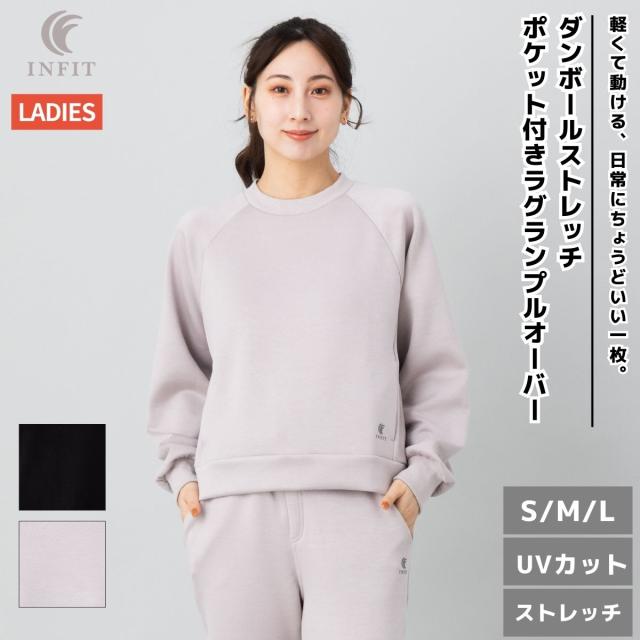 インフィット INFIT ダンボールストレッチUVカットポケット付きラグランプルオーバー レディース 春 秋 冬 トレーナー スポーツ トレーニング ウェア プルオーバー ブラック 黒 グレージュ ストレッチ UVカット SF215933