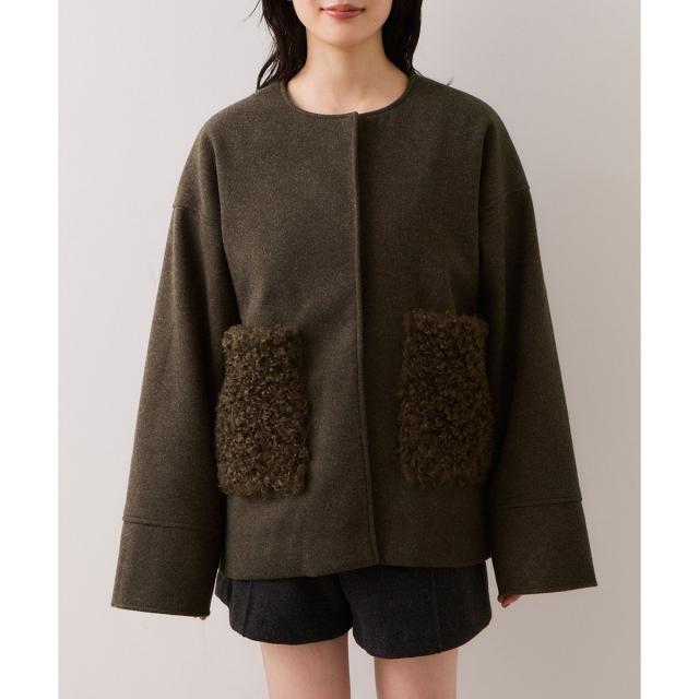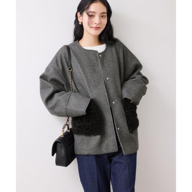 ふっくらとしたウールタッチ素材に、表情のあるボアポケットを施したデザインジャケット。