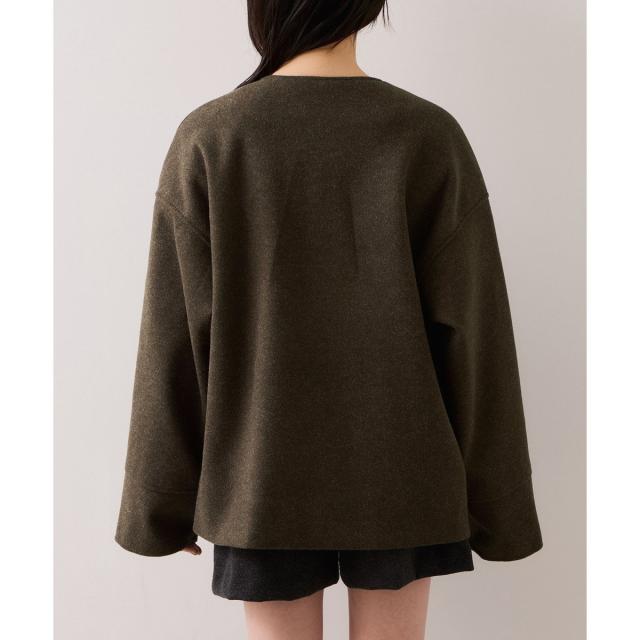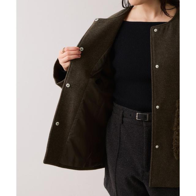 ノーカラーなのでストールやマフラーとも相性が良く、首まわりにボリュームを出した冬の着こなしにも馴染む一枚です。シンプルなデニムやワイドパンツを合わせても十分に華やぎが生まれ、スカートやワンピースに重ねれば柔らかい印象の女性らしいスタイルへとシフトできます。