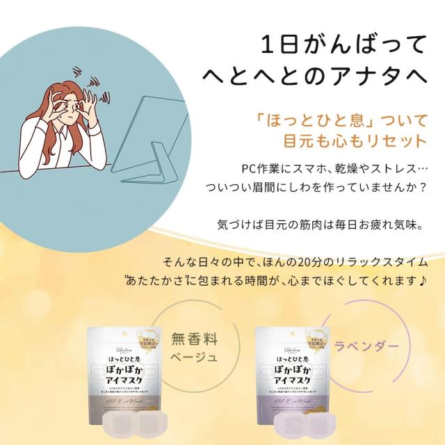 アイマスク ホット 使い捨て ホットアイマスク かわいい 耳かけ レディース 温める 薄手 暖かい あったか 男女共用 めぐり 眼の疲れ 就寝 疲労 休憩 一息 回復 旅行 睡眠 快眠 温活 冷え性 あったかグッズ ラベンダー ベージュ ほっとひと息 ぽかぽかアイマス 5枚入り inf-32