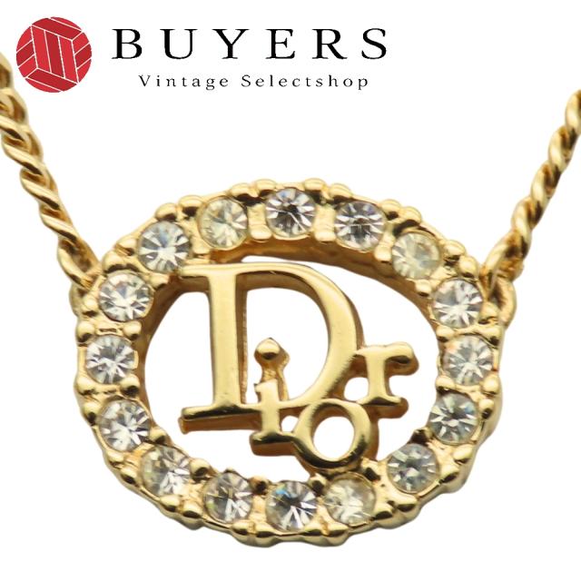 中古 クリスチャンディオール ネックレス CDロゴ メタル ラインストーン ゴールド GP メッキ アクセサリー レディース 女性 Christian Dior