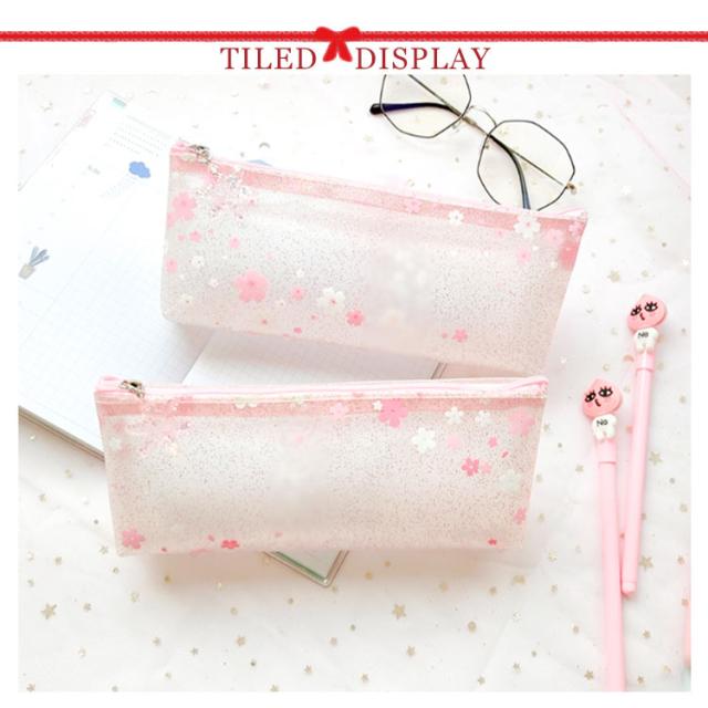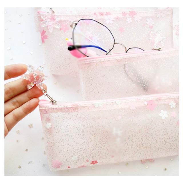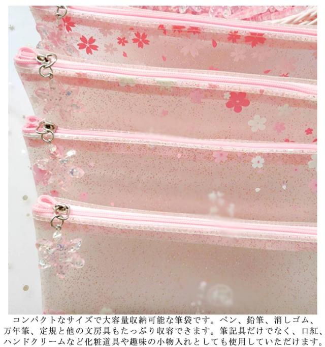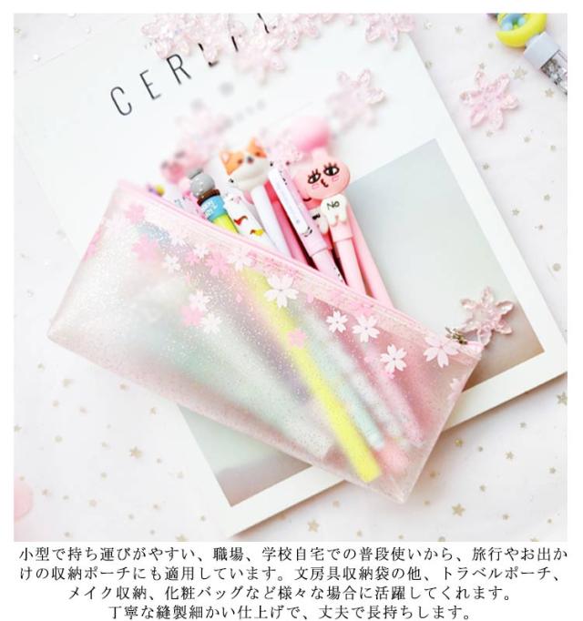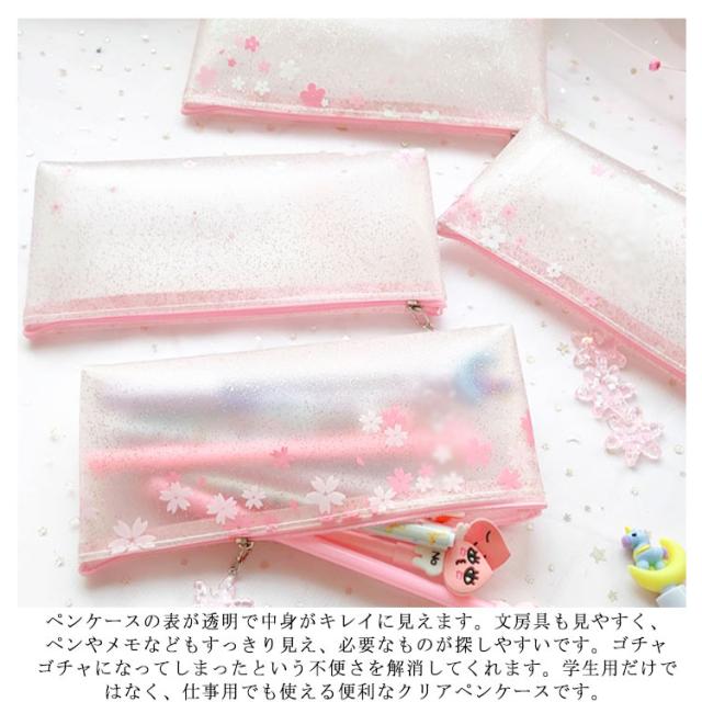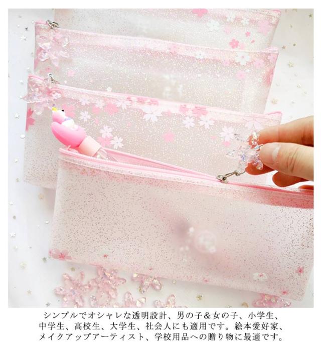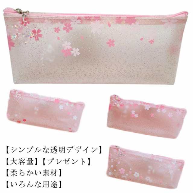 ペンケース クリア 透明 筆箱 ふでばこ おしゃれ 大容量 ペンポーチ 高校生 文房具収納 クリア 桜 さくら 収納ポーチ 筆入れ 可愛い コンパクト レディース 大学生 入学祝い ギフト プレゼント 韓国 小学生 中学生 小さめ 女子 かわいい ピンク