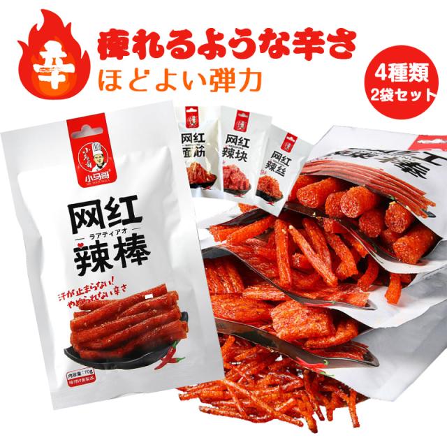 【クーポン配布中】「70gx4袋入り」SNS話題中 4種食べ比べセット 小馬哥 ラーティアオ 辛口おやつ 網紅辣棒 網紅面筋 辣條 辣条 70g 中国スナックお菓子 おやつ 間食 辣条 中華食材・中国物産 中国食品 中華お菓子 中国菓子 間食 おつまみ おかず お酒の肴