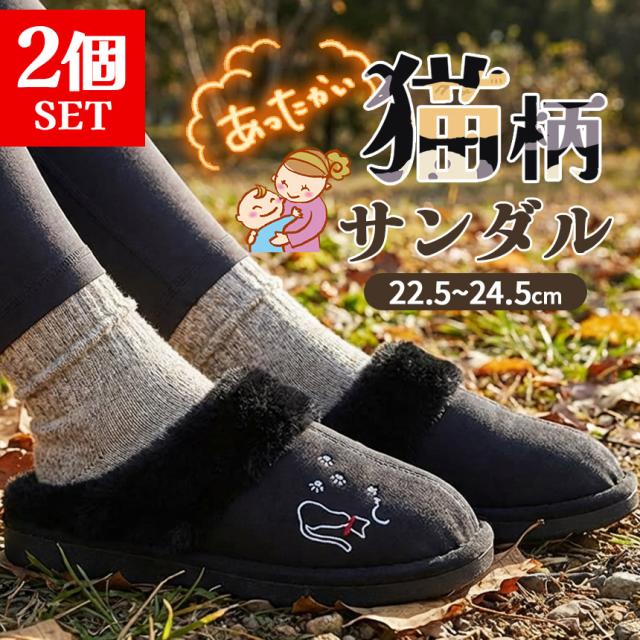 2足セット 猫柄 スリッパ 外履き 防寒 冬 あったか ボア シューズ 2cm ヒール ソール 軽量 もこもこ 外用 玄関用 ベランダ レディース メンズ グッズ 冷え 対策 ふわふわ 猫 デザイン 刺繍 可愛い 家事 ゴミ出し 庭 来客 ベランダ 暖かい 軽い 防寒アイテム ぽかぽか