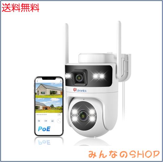 Ctronics 防犯カメラ 屋外 900C-DL デュアルレンズ 360°全方位監視 PoE対応 2.4/5GHz WiFi対応 AI人検知 自動追尾 FTP/NVR/ONVIF プリセ