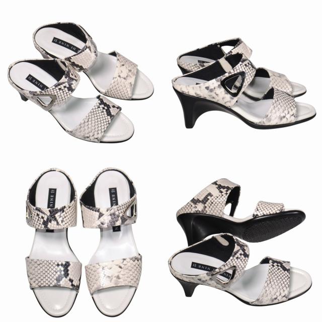 NINE DI NINE 3501 ナインディナイン サンダル 2S S M L レディース ホワイト蛇 ミュール クロコ型押し カジュアル オープントゥ ヒール 天然皮革 日本製 春夏