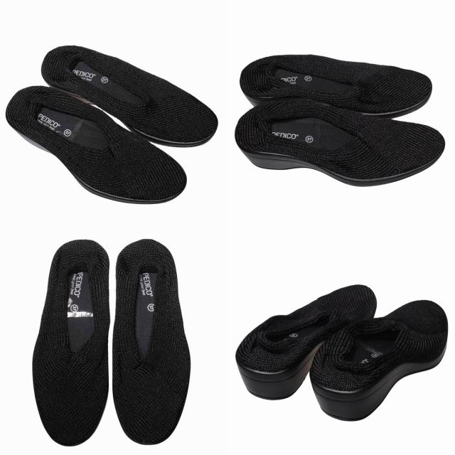 【靴のHOSHIKAWA】 『ARCOPEDICO MAILU』 アルコペディコ パンプス 23cm〜25cm ブラック ニット ウェッジソール 室内屋外両用 バレエシューズ ポルトガル製 軽量