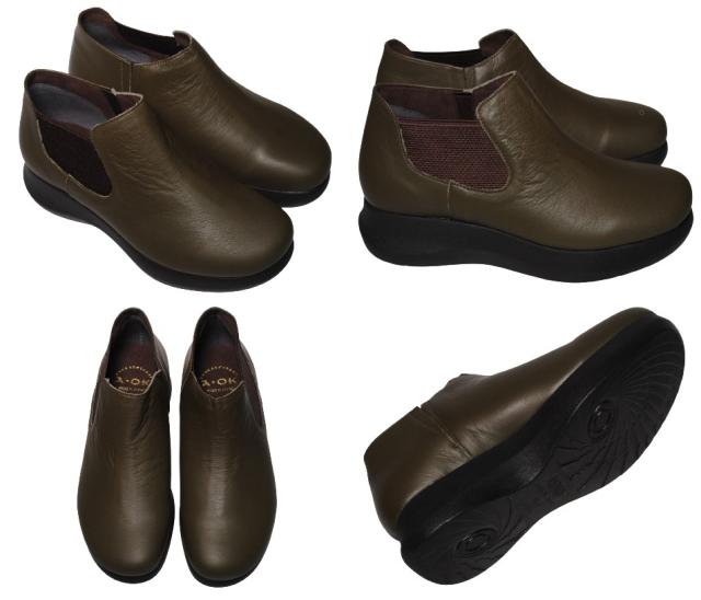 A-OK 38251 エーオーケー ブーティー 22.5cm〜24.5cm EEEE レディース オリーブ サイドゴア 厚底 ショート丈 牛革 日本製 秋冬