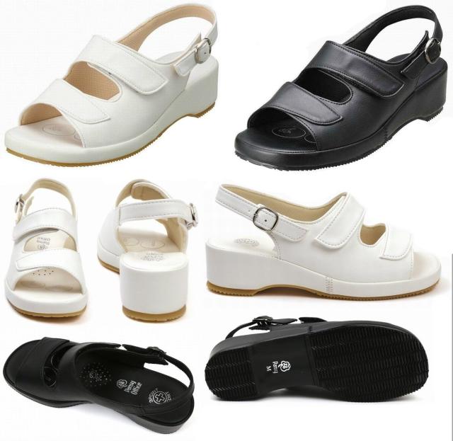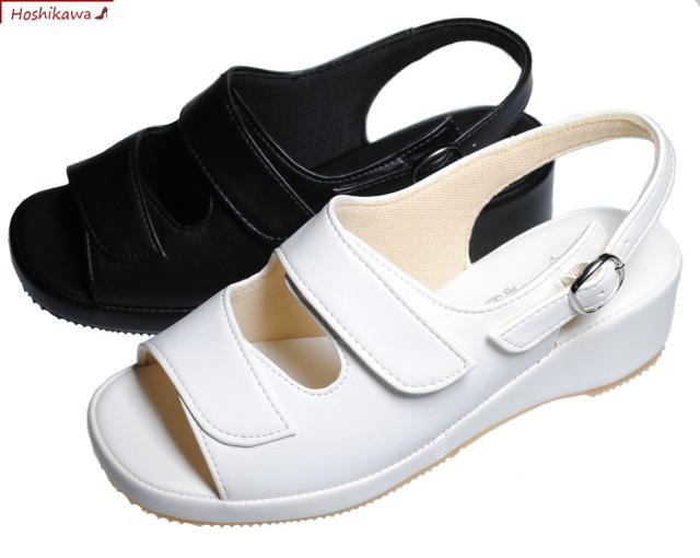 【靴のHOSHIKAWA】 『PANSY 5303』 パンジー レディース S M L LL ナースサンダル オフィスシューズ マジックテープ シロ クロ 室内履き