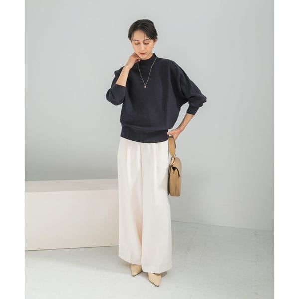 ウォッシャブル仕様×アンチピリングの、デイリーに嬉しい機能性を備えたニットプルオーバー。程よくゆとりのあるドルマンシルエットに、裾のリブが効いていることで、ワイドパンツやボリュームのあるボトムともバランスよくまとまる一枚です。ボトルネックが顔まわりを上品に見せ、シンプルながら一枚で着てもきちんと感のあるデザインに仕上げました。扱いやすさときれい見えの両方を求める、大人のワードローブにぴったりのデイリーニットです。